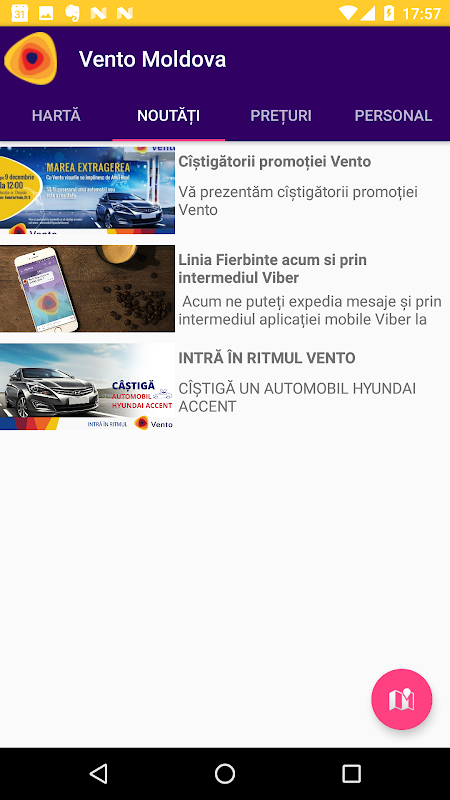 Această aplicație conține informație despre stațiile Vento Moldova, prețuri, locația stațiilor de alimentare și oferă access în contul personal Vento de unde poate fi gestionat cardul Vento Moldova și consulatat istoricul și prețul combustibilului. Aplicația vă poate ajută să indentificați cea mai aproapiată benzinărie de dvs și vă direcționează către ea.