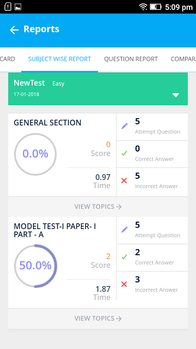 Our online exam provides a detailed analysis about the students score card covering each section individually.