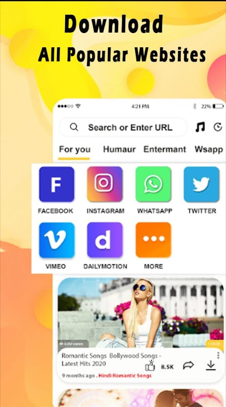 Free video downloader auto detects the video. This video downloader 2021 is the best and fatest mp4 video downloader which helps you to download your favorite videos, music, movies