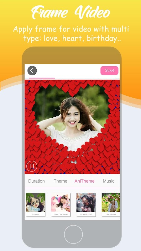 Com Video Slideshow Maker você pode facilmente criar, editar o seu vídeo da música com muitas animador efeito como efeitos de chuva, efeito de neve, efeito fogos de artifício, efeito amor ...