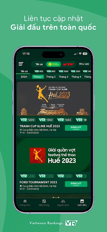 - Veja as últimas classificações oficiais do Viettennis Ranking (VTR) de cada torneio, atualizadas em tempo real. Garanta que todas as pontuações, classificações e cronogramas de partidas sejam sempre atualizados com a maior rapidez e precisão possível. Ao mesmo tempo, o aplicativo notificará a próxima partida ao jogador, evitando que o jogador chegue no horário errado e perca.