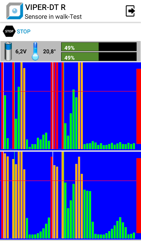 O aplicativo permite que você defina todos os parâmetros operacionais do sensor e verifique em tempo real em um gráfico o nível de sinal recebido das cabeças individuais.