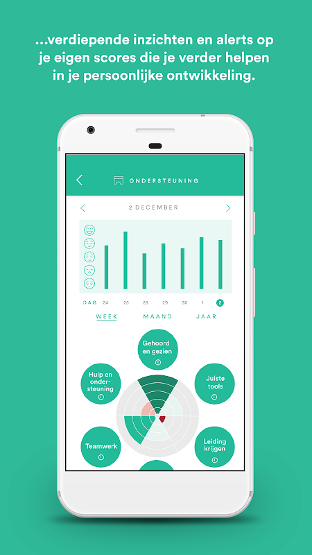 Através de insights sobre motivos de trabalho, você pode se desenvolver melhor e melhorar sua vitalidade no trabalho. A operacionalidade é medida com base nos motivos de trabalho VIGO (energia, espaço, desafio, suporte, resultado e crescimento). Todos os meses, você recebe seu painel pessoal VIGO on-line com análises e tendências e insights VIGO com conselhos úteis.