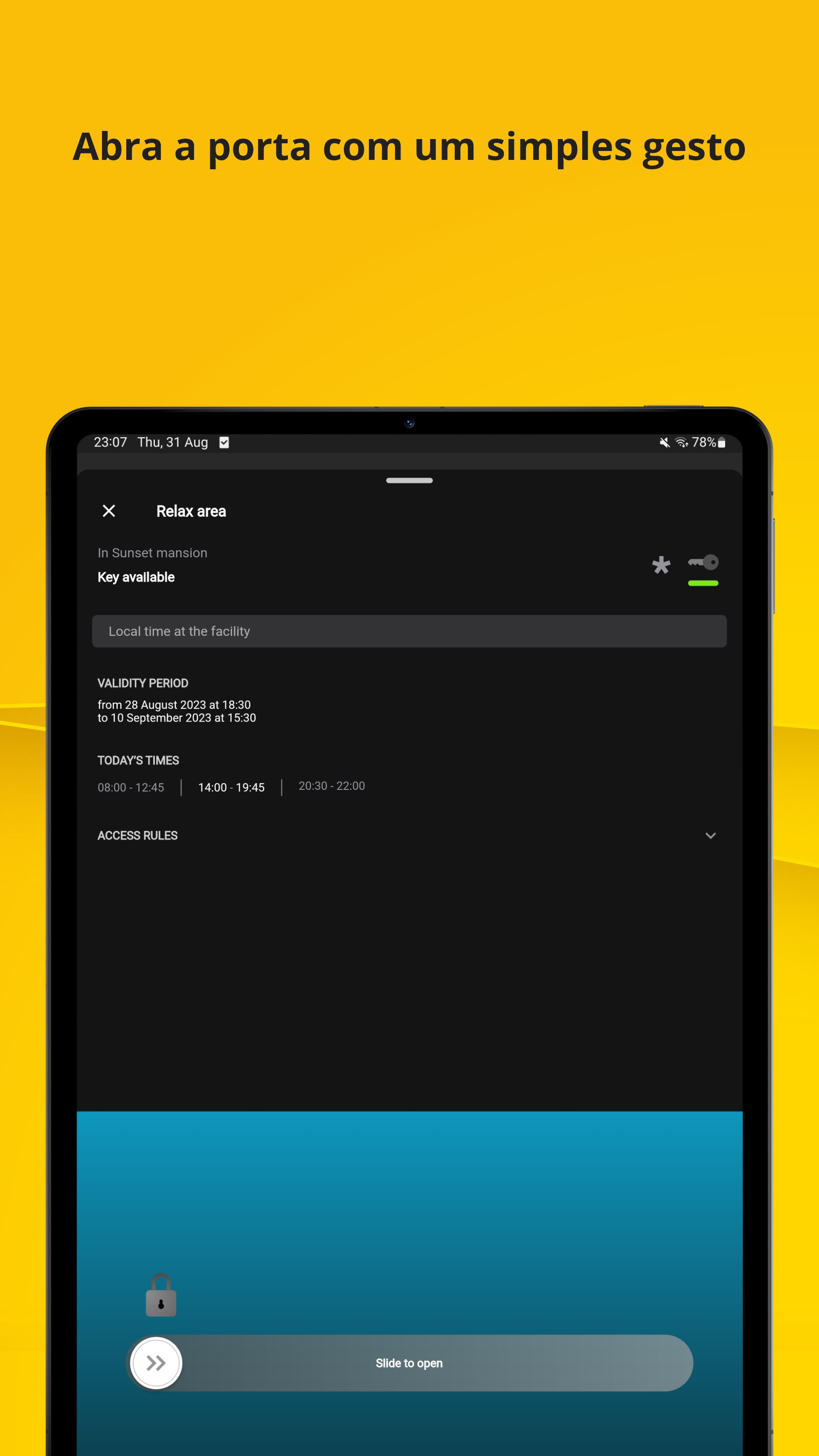 O acesso a uma porta/quarto é garantido por um porta-chaves digital, ativado na App, após a receção de um email de convite com as datas de validade.