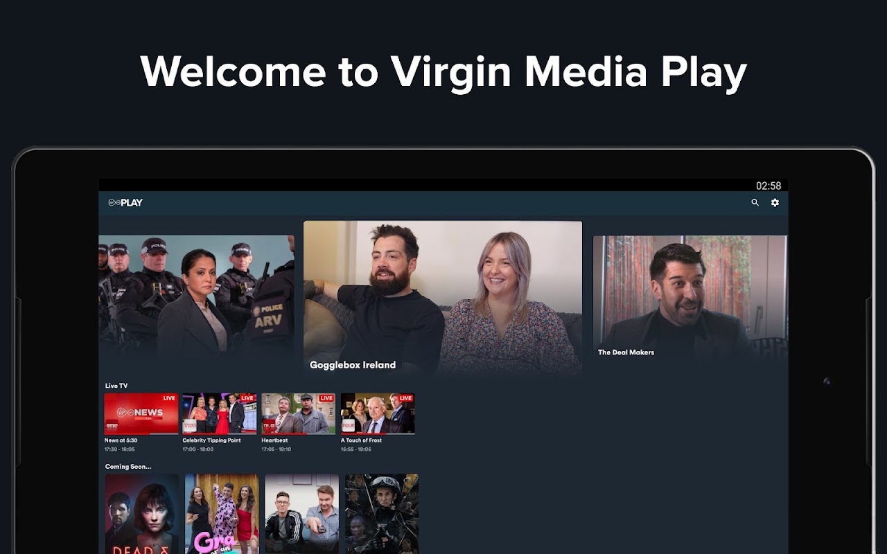Transmita TV ao vivo, acompanhe programas irlandeses e internacionais com Virgin Media Play.