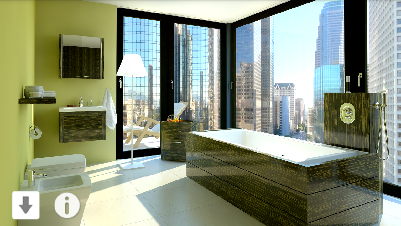 Com a ponta do dedo simplesmente você pode abrir o panorama e movimentar os quartos, detalhes do zoom ou tomar na atmosfera do quarto de uma distância. Este trabalha com o dedo, bem como com o sensor de movimento integrado (giroscópio) através de torneamento e de inclinação. Aproveite esta galeria impressionante.