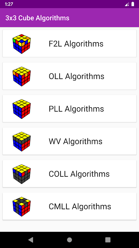 Este aplicativo mostra algoritmos de cubo intermediário 3x3 com base no método CFOP e no método Ortega 2x2.