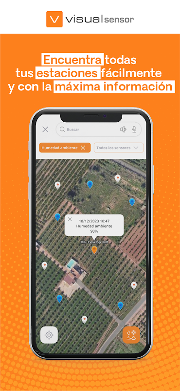 As estações são geolocalizadas e com visualização em mapa que o ajudará a saber rapidamente o estado das parcelas e cultivos.