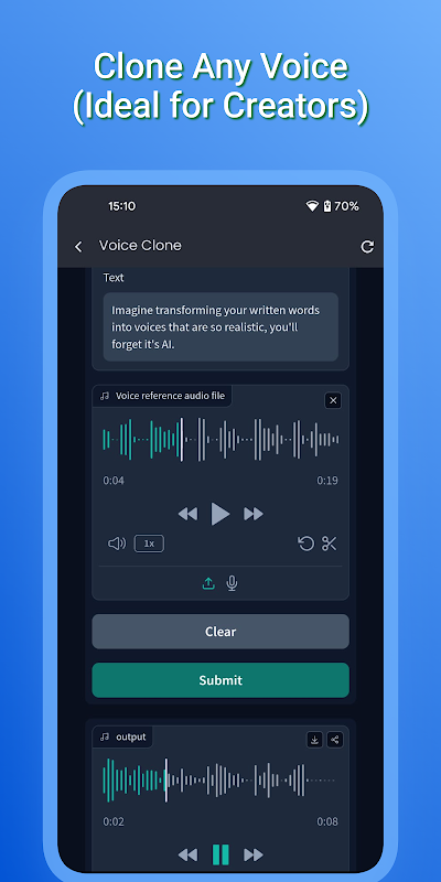 Transforme seu texto em fala realista com 'Vocalizer-AI: Text to Speech & Voice Cloning'. Este aplicativo com tecnologia de IA oferece uma experiência de conversão de texto em fala incomparável, oferecendo vozes com som natural em mais de 100 idiomas e sotaques, incluindo inglês, espanhol, francês, alemão e muito mais. Ideal para criadores de conteúdo, profissionais ou qualquer pessoa que precise de narrações realistas, o Vocalizer AI torna mais fácil do que nunca a criação de áudio de alta qualidade a partir de texto. Nossa avançada tecnologia de IA oferece áudio nítido, tornando-o perfeito para criação de conteúdo, aprendizagem de idiomas ou necessidades de acessibilidade.