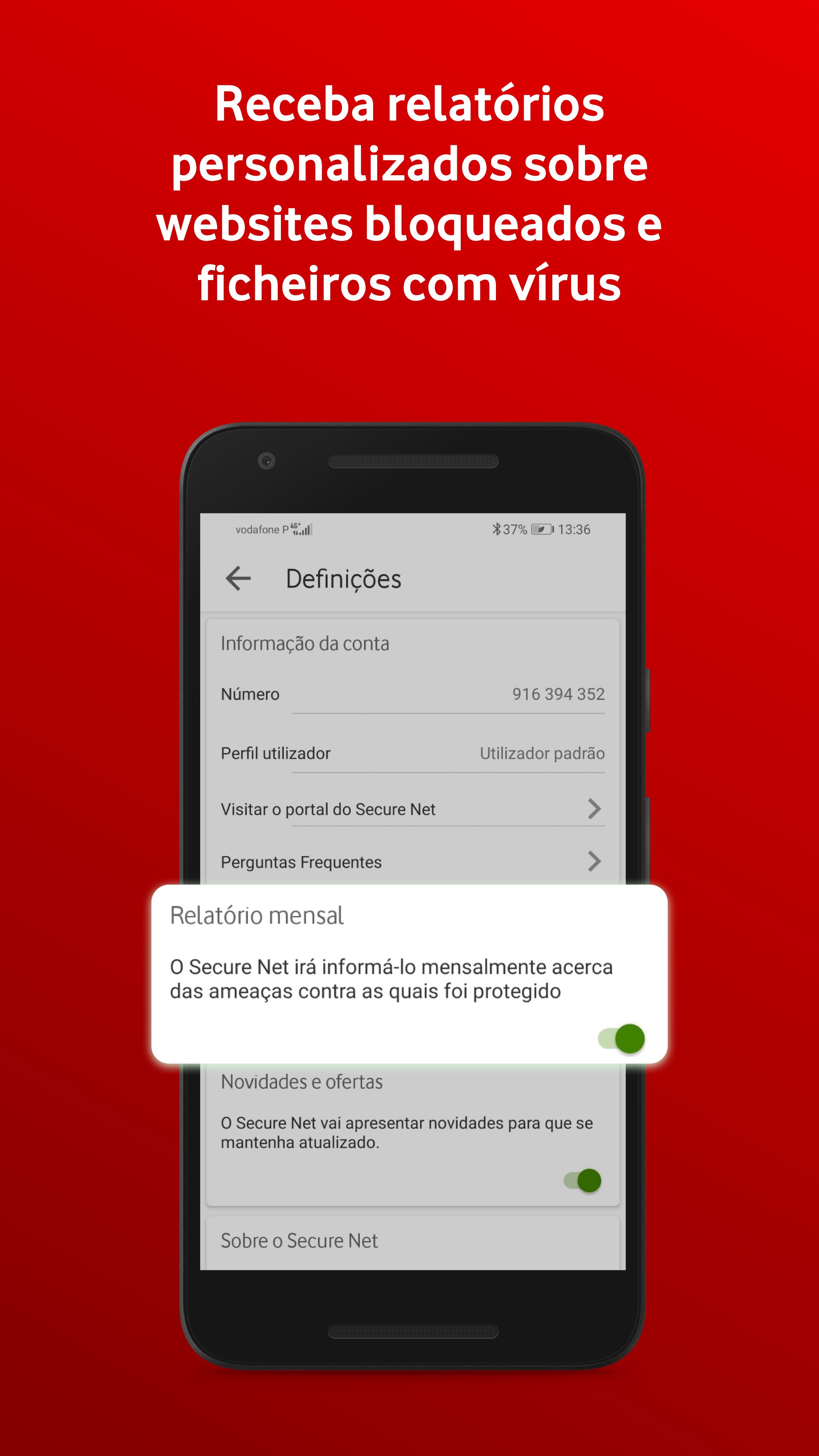 ✔ Proteja o seu telemóvel de vírus enquanto está na rede móvel da Vodafone