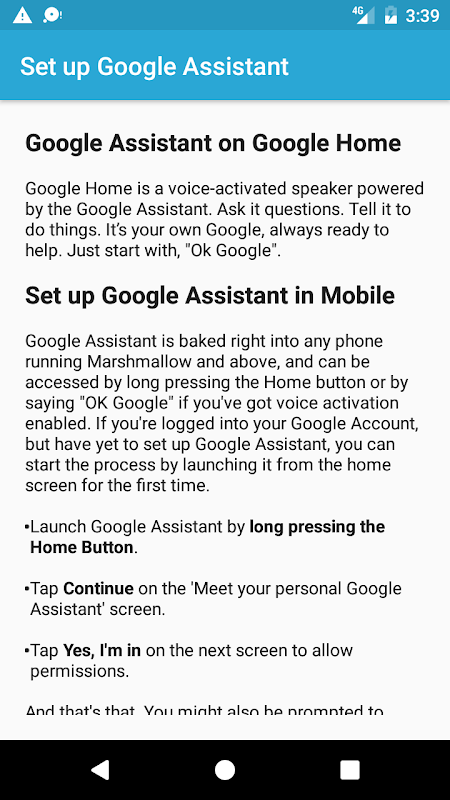 Todos os comandos do Google Assistant estão disponíveis nesta aplicação android