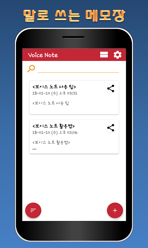 이제는 편하게 음성으로 메모하세요! 보이스노트로 나의 일상을 기록하고 공유하세요! ** 청각장애인을 위한 보조앱으로 사용 가능합니다.