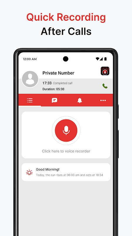 Gravação rápida após cada chamada. Comece a gravar imediatamente após as ligações para não esquecer detalhes e tarefas importantes.