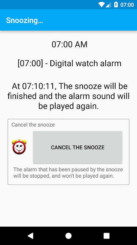 (4) Se a segurança de bloqueio de tela do dispositivo estiver ligado, a tela de bloqueio de segurança será apareceu quando a tela foi desligado na hora do alarme especificado. Então, de volta / menu / volumes teclas do dispositivo não funcionam para o recurso soneca na tela de bloqueio de segurança.