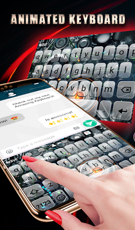 O design personalizado do teclado com gráficos animados é uma ótima combinação para o papel de parede animado legal. Este teclado torna a escrita divertida com recursos de comunicação avançados. Primeiro, você tem um design incrível de sua escolha para deleite visual. Personalize junto com fontes, cores vivas e sons engraçados do jeito que você gosta. Mais de 800 emojis estão disponíveis para expressar emoções facilmente usando o fundo colorido do teclado. Se você é fã de GIFs, vai adorar a coleção vinculada ao Teclado Animado Wave. Além disso, você pode criar um GIF instantâneo para revelar seus pensamentos. Além da boa aparência e das maneiras divertidas de se comunicar, o Teclado Animado Wave oferece algumas ferramentas de escrita inteligentes. O recurso de correção automática oferece suporte a mais de 20 idiomas. Suas mãos estão livres para fazer algo que você gosta mais do que escrever usando a opção de entrada de voz: