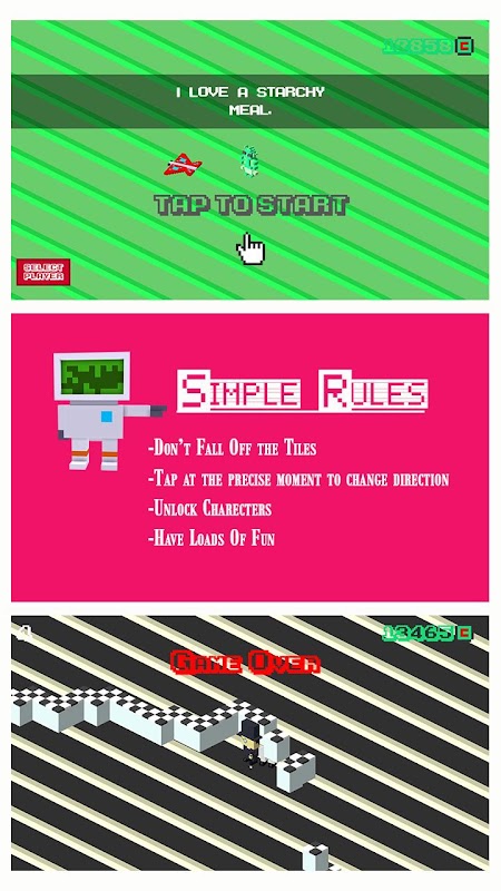 Simple yet challenging gameplay. Loads of characters to be unlocked. Tap at the precise moment to get off the falling tiles. Vivid characters with personalised themes...Lots more to come in updates....Highly addictive and loads of fun....challenge your own limits....