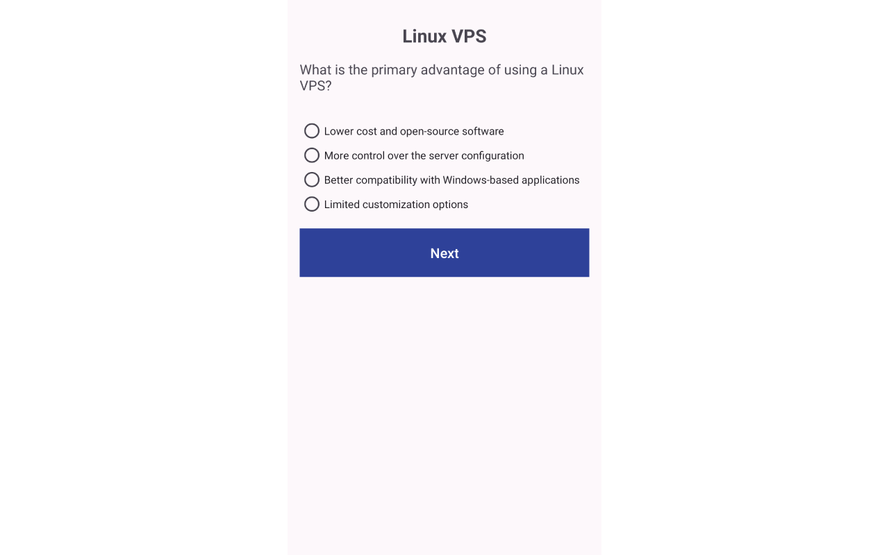 Seleciona aleatoriamente um tipo de VPS e apresenta 10 perguntas do questionário relacionadas.
