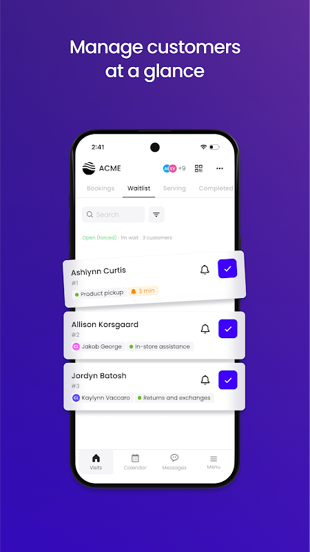 Waitwhile capacita as empresas a oferecer experiências excepcionais aos clientes por meio de gerenciamento eficiente de listas de espera, agendamentos simplificados, mensagens instantâneas e análises poderosas. Os hóspedes podem facilmente entrar em filas e agendar compromissos enquanto monitoram seu status em tempo real de qualquer lugar, e as empresas podem reduzir os tempos de espera, otimizar recursos e aprimorar as operações com automação inteligente.