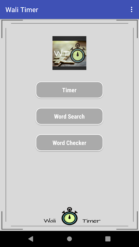 Wali Timer! Um perfeito para Scrabblers que consiste em um temporizador, um verificador de palavras e uma pesquisa de palavras.