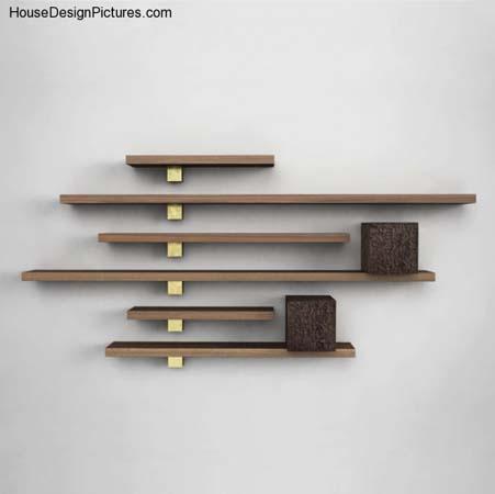 Usando prateleiras de parede de madeira para armazenar livros, como livros, enfeites para casa, e até mesmo como um lugar para a televisão, DVD ou alto-falante.