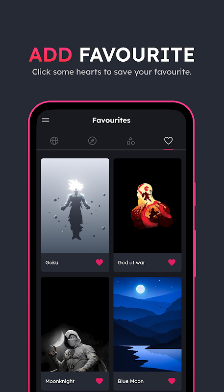 Novas paredes adicionadas diariamente de categorias como Anime, Gradiente, Mínimo, Super-herói, Abstrato, Obra, Jogos, Carros, Animais, Séries, Filmes, Espaço, Meninos, Meninas, Natureza, Arquitetura, Citações, Premium.