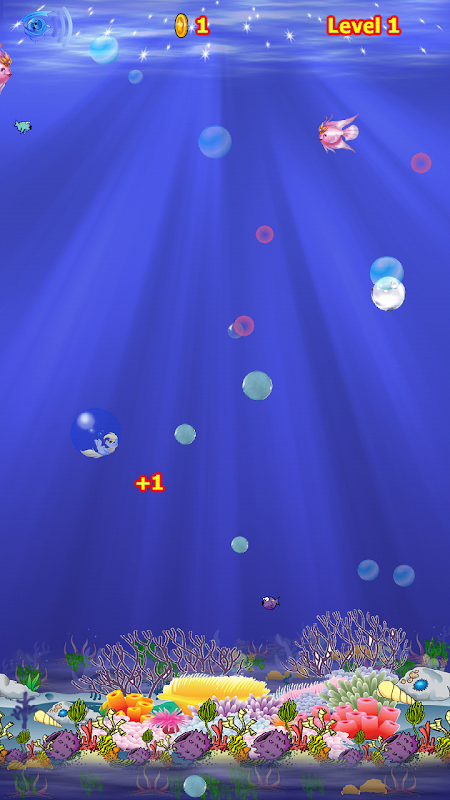 Underwater, a water bubble is looking for other kinds of bubble to adsorb and increase its score, however the water bubble should keep off the fishes, if not, it will die and its score and level will be restarted in next turn.