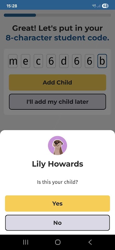 Após baixar o aplicativo, você precisará de um código do professor do seu filho para se conectar à conta dele.