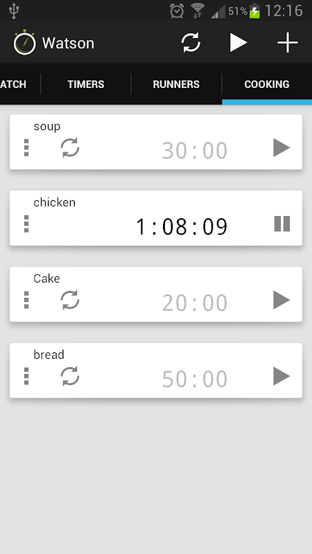 Watson is a multiple stopwatch and timer application using an intuitive page view layout. Each page can represent a different category, e.g. cooking, exercise, work, games.