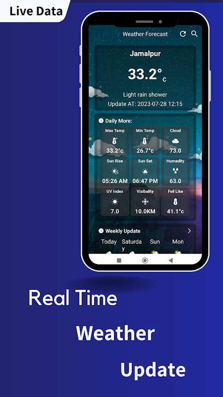 6. Atualizações meteorológicas abrangentes: obtenha atualizações semanais, diárias e de hora em hora com informações em tempo real, mantendo-o informado sobre as mudanças climáticas.