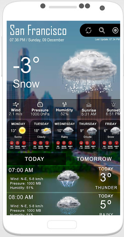 This Weather ForeCast 2021 app will help you warning storm, rain, hurricane at your location with storm tracker, hurricane tracker feature. Get the latest specifics on temperature, rain, probability of precipitation, snow, wind, sunshine hours, sunrise and sunset times. Detailed displays of air pressure, humidity levels and UV-Index.
