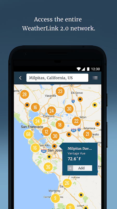 O WeatherLink permite que você veja os dados pessoais da estação meteorológica de Davis Instruments e as previsões locais, além de explorar outras estações de todo o mundo. Desfrute de dados em tempo real, previsões e gráficos interativos.