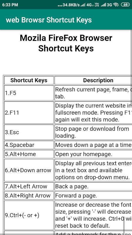 web browser shortcut keys Provide five web browser shortcut keys App Provide.web browser shortcut keys. then a total 5 web browser shortcuts available this app.