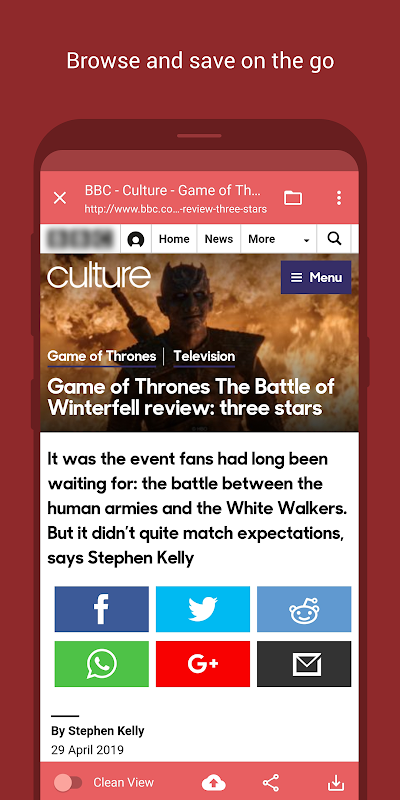 - A visualização limpa manterá apenas o conteúdo da página (ou seja, artigo) e removerá o restante.