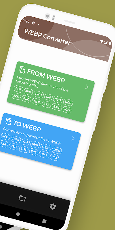 📂 All the converted files are saved in the root folder of your phone, in the folder “WEBP Converter”