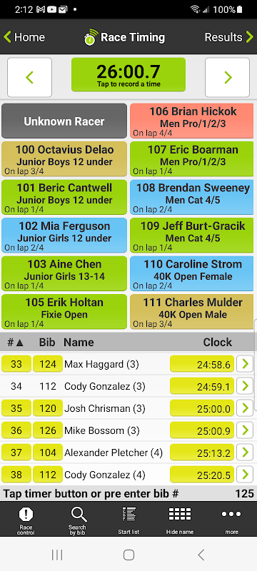 Updated 'Search racer' allows search by bib or name