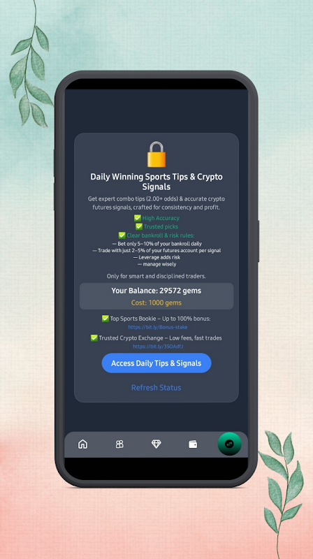 Ganhe joias diariamente e desbloqueie sinais de futuros de criptomoedas, dicas esportivas!