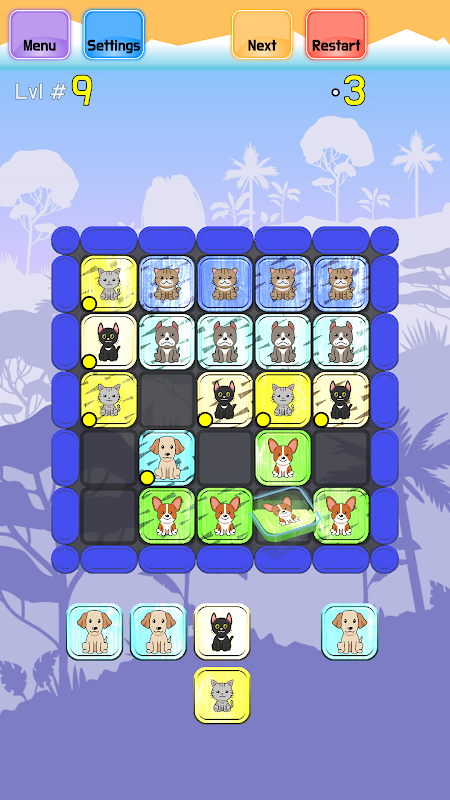 Quebra-cabeça de combinar 3 com imagens fofas que precisam ser organizadas em mais de 3 grupos, com movimentos legais, mais de 900 níveis, dificuldade personalizável e um pacote visual atraente com música agradável.
