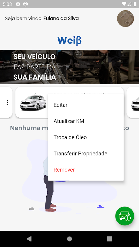 No Weiβ você pode cadastrar seus veículos e transferi-los para outros usuários.