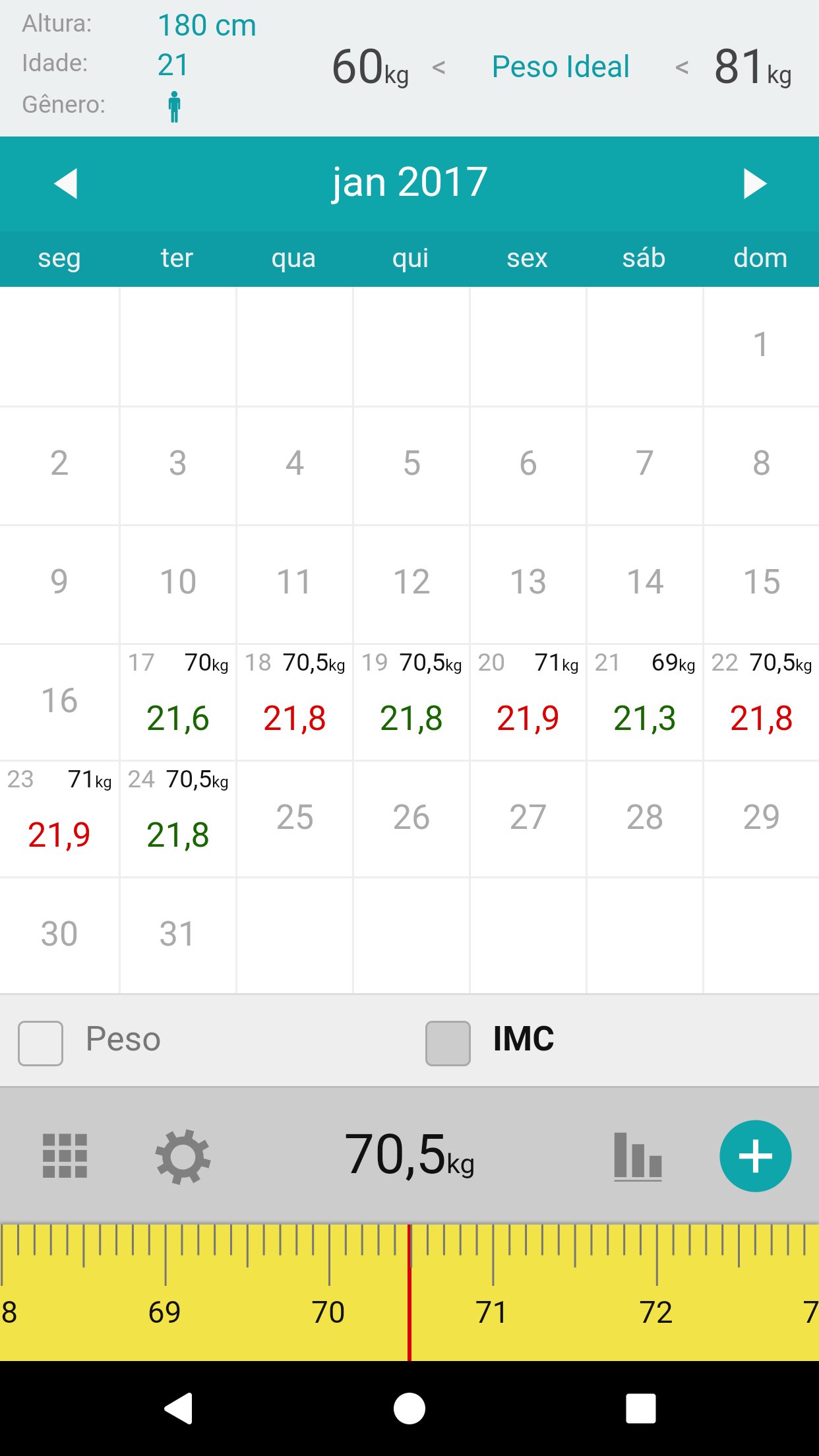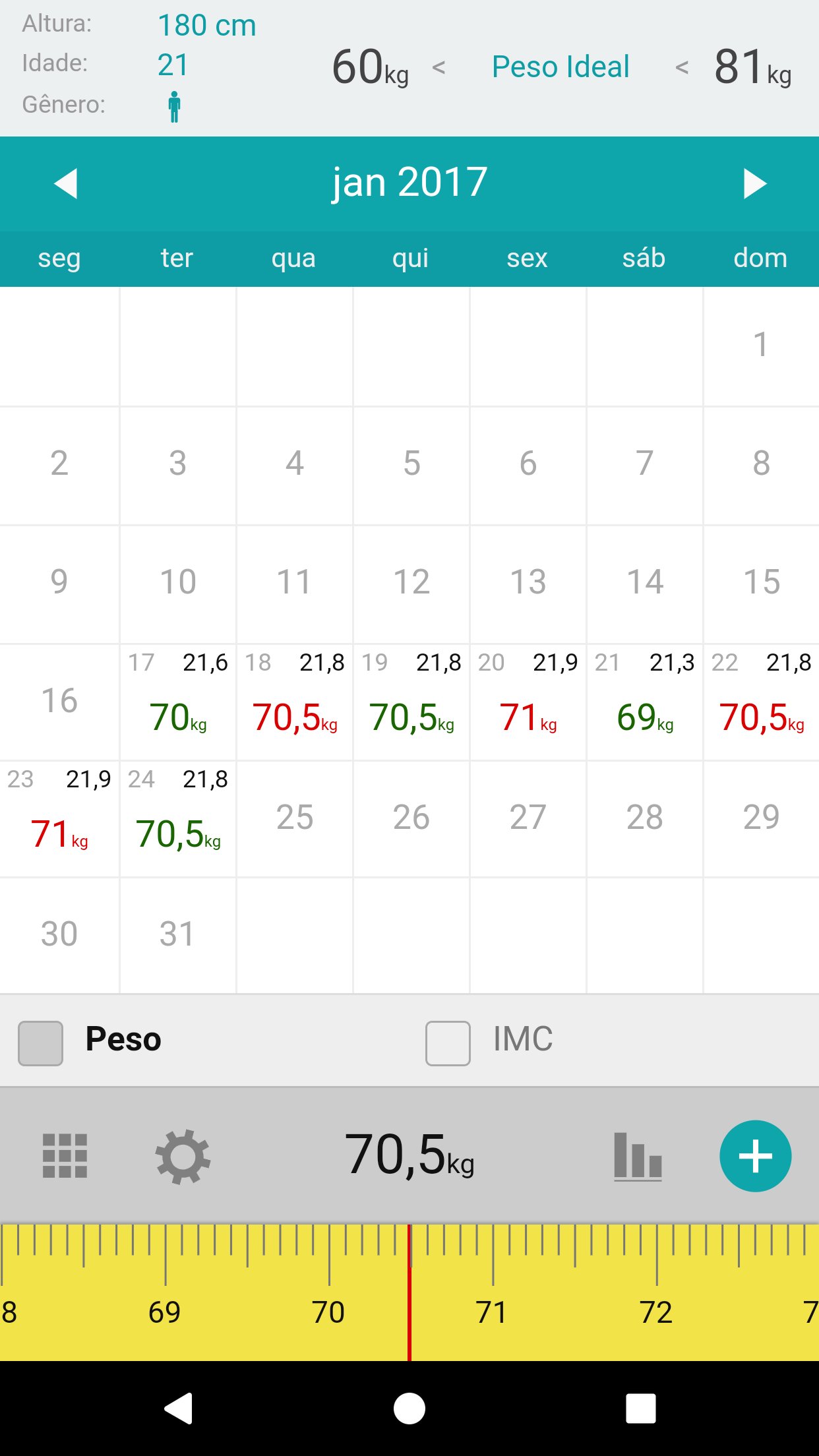 Calendário de Peso é uma aplicação gratuita e fácil de usar.