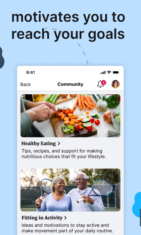 • A Comunidade Welldoc para manter a motivação com membros como você