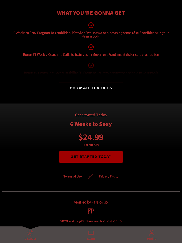 Faça uma amostra do nosso método de movimento três em um com "6 semanas até a sensualidade" ou mergulhe em um de nossos 3 programas básicos que enfocam condicionamento físico, flexibilidade e etos guerreiro