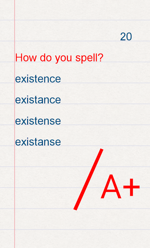 Cada rodada consiste de 20 perguntas. Aparecem 4 maneiras de soletrar uma palavra complicada.