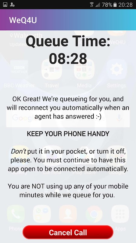 WeQ4U é a última rodada em nossa batalha para acabar com o sofrimento da espera em espera nos call centers do Reino Unido. Ajude-nos a ajudar mais pessoas, contando a seus amigos sobre o WeQ4U.