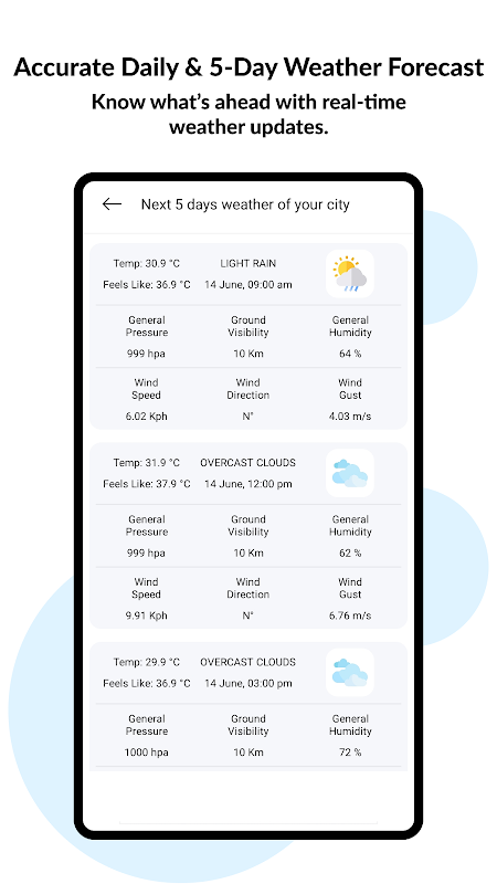 • Previsão do tempo precisa para o dia e para os próximos 5 dias