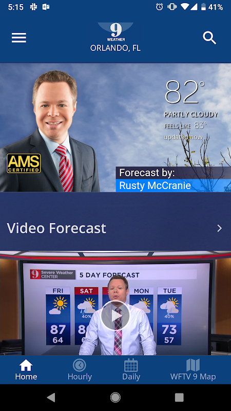 O meteorologista-chefe Tom Terry e a equipe do WFTV Channel 9 de meteorologistas certificados produziram a tecnologia climática local mais precisa disponível com o aplicativo WFTV Channel 9 Weather.