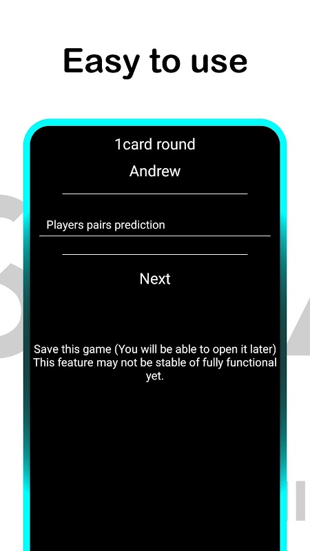 • In the Offline mode, one player, the one that uses the app, has the score table and enters the predictions and the actual number of pairs that were made.