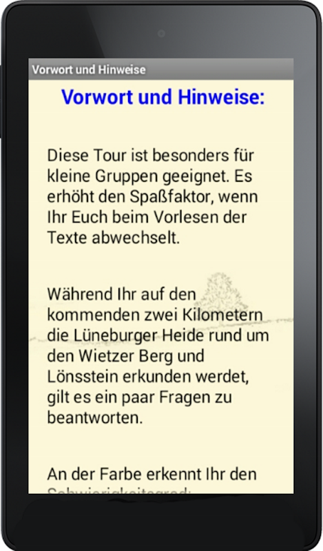 - Unser Tourbuch voller Wegebeschreibungen, Geschichten und Rätsel umgesetzt als App