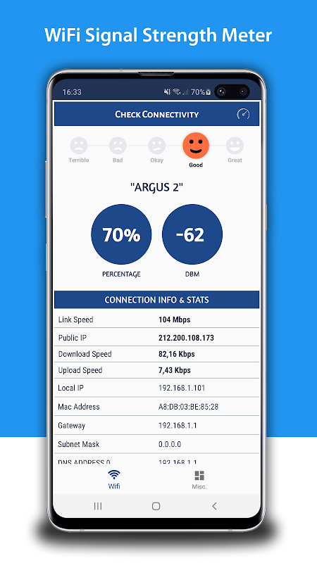 Wifi Signal Meter irá ajudá-lo a analisar e otimizar suas redes WiFi, transformando seu dispositivo em uma ótima ferramenta para medir a força do sinal wifi. O WiFi Analyzer também ajuda você a escolher o canal com menos congestionamento para que sua rede funcione perfeitamente.