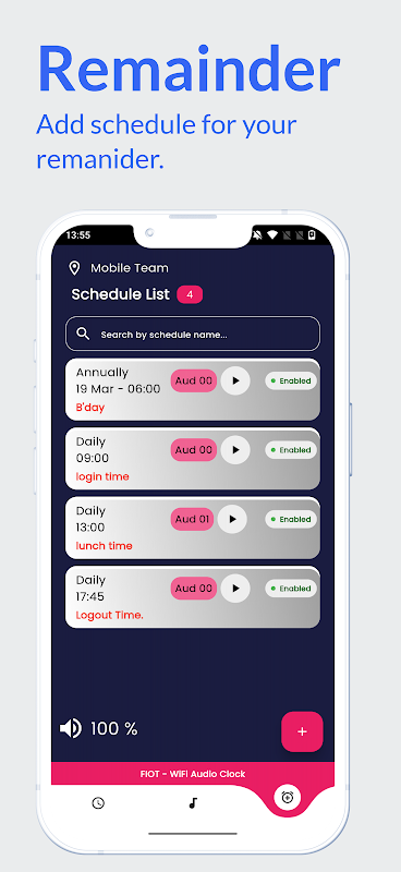O WiFi Audio Clock é uma solução de cronometragem inovadora e versátil projetada para aumentar a produtividade em vários ambientes. Aproveitando a sincronização em tempo real com servidores UTC globais, este relógio garante uma precisão de hora impecável, independentemente do fuso horário. Com recursos personalizáveis, como alarmes sonoros e agendamento de eventos, este dispositivo é perfeito para instalações de saúde, escritórios, escolas e residências.