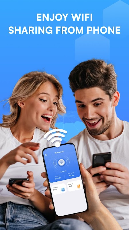 Wi-Fi Hotspot - Free Hotspot is an innovative app designed to turn your mobile device into a powerful internet sharing tool. With a simple tap, you can transform your smartphone or tablet into a secure Wi-Fi Hotspot, allowing you to share your device's internet connection with friends, family, or colleagues. Whether you're working remotely, traveling, or in an area without a reliable internet connection, Wifi Hotspot - Personal Hotspot ensures you stay connected at all times.